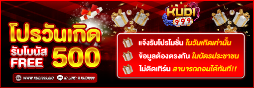 โปรโมชั่นฟรีเครดิต 500 จากโปรวันเกิด วันเกิดจะตรงกับบัตรประชาชนของท่านจริง